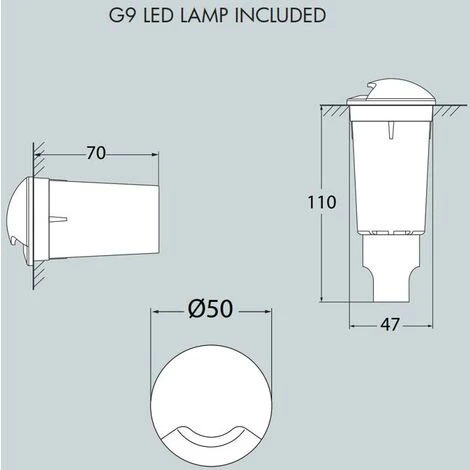 ALDO .Apparecchi luminosi adatti sia per installazione a pavimento, ad incasso a parete senza viti a vista. Realizzato in materiale resinoso antiurto, stabilizzato ai raggi UV, antiruggine e anticorrosione. Forma quadrata o tonda con diverse coperture disponibili per un emissione di luce diffusa o diretta. Fornito di serie con lampada LED G9 approvata TUV, di lunga durata ed efficiente inclusa . Classe di isolamento II, grado di protezione IP 67. :TAGLIA= larghezza: 50 mm lunghezza: 50mm altezza: 110 mm :MATERIALE= PC (diffusore) , resina (corpo) :PESO= 40gr :CABLAGGIO= G9 :INSTALLAZIONE= interrato , incasso , pareteDOWNLOAD:Dettagli tecnici=Clicca Qui:Dettagli lampadine=Clicca Qui