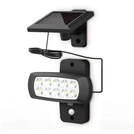 - La lampada solare per esterni in 2 parti è composta da un pannello solare e un faretto. I due componenti sono collegati con un cavo di 2,5 metri resistente alle intemperie. In questo modo, è possibile allineare in modo ottimale il pannello solare al sole indipendentemente dal proiettore e utilizzarlo all’aperto.