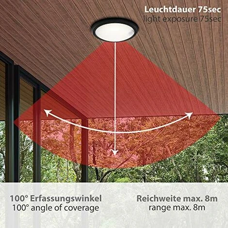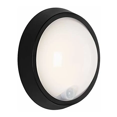Briloner Leuchten – Luce esterna a LED, lampada da parete da esterni incl. sensore di movimento e sensore crepuscolare, 12 watt, 1.150 Lumen, 4.000 kelvin, bianca/nera, rotonda, Ø 17cm