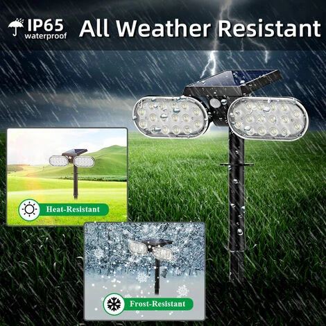 Eccellente proiettore solare con controllo della luce a doppia testa: pannello solare in silicio policristallino da 5 V/2 W per caricarsi automaticamente durante il giorno e accendersi automaticamente di notte, con 2 modalità di illuminazione (induzione del movimento e luce lunga e intensa) da cui passare.Alimentazione solare, risparmio energetico: batteria ricaricabile solare integrata da 2200 mAh, la lampada può essere caricata dalla luce solare diretta durante il giorno e dall’illuminazione automatica di notte (accendere in anticipo il pulsante di accensione sul retro) , nessuna alimentazione esterna richiesta, non solo aumenta i vantaggi economici, ma riduce anche notevolmente le bollette elettriche.,Livello di impermeabilità IP65, qualità affidabile: design resistente all’acqua, nessuna paura del vento e della pioggia, resistente a tutti i tipi di maltempo . Materiale ABS di buona qualità, antiruggine, anticorrosivo e resistente al sole. Adatto per l’illuminazione esterna, come cortile, patio, giardino, vialetto, vialetto, piscina, veranda, ecc. Sorgente luminosa a chip LED: è composta da due lati sinistro e destro, 32 luci LED SMD2835 forniscono fino a Portata di illuminazione di 270° e 8 metri, alta luminosità al buio e basso consumo energetico.