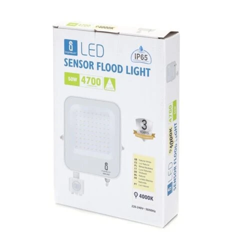 Faro LED 50 W con sensore crepuscolare, colore luce bianco freddo IP65