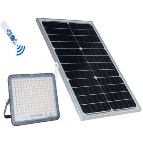 Faretto Led Da 70w 120w 200w 300w per esterno IP66/ 67 con pannello solare abbinato completo di staffa e telecomando e cavo, con sensore crepuscolare integrato per l’accensione automatica al calare della luce e pannello solare.
