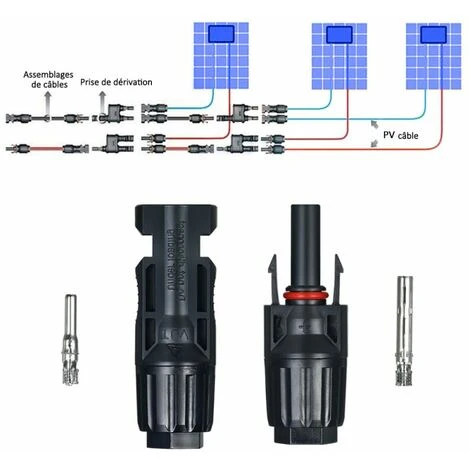 - Ce sont des connecteurs de style utilisés pour connecter plusieurs panneaux solaires ou groupes de panneaux solaires dans un champ solaire et généralement utilisés dans des applications parallèles. L’outil de montage fourni facilite l’utilisation des utilisateurs de serrer rapidement et facilement les connecteurs.