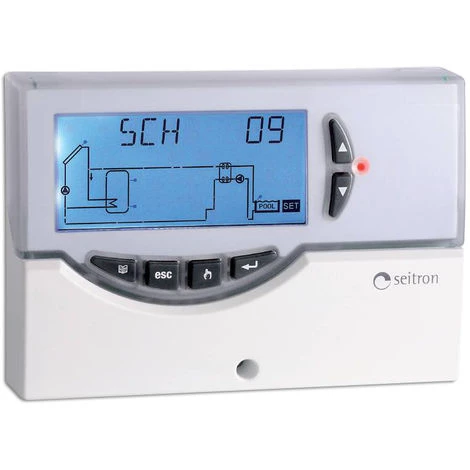 Questo dispositivo è una centralina digitale per il controllo diimpianti a pannelli solari termici. Dotata di 3 Uscite a relè (2dei carichi + 1 di Allarme), un’uscita PWM, un’uscita 0..10V e 3Ingressi (Sonde NTC) è in grado di configurare e gestire fino a 6tipi di impianti solari differenti. Selezionando uno dei 6 schemid’impianto, la centralina gestirà automaticamente le uscite e gliingressi relativi al tipo di impianto prescelto.