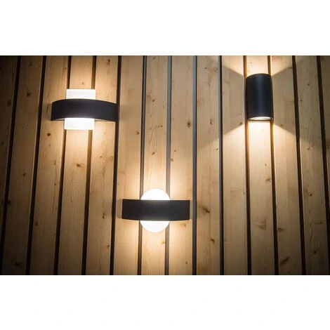 Apparecchi dal design moderno e diffusione della luce in alto e in basso. Caratteristiche prodotto: Apparecchi LED per esterni luminosi e funzionali. Corpo in alluminio pressofuso. Disponibile in forma rotonda o quadrata. Vantaggi prodotto: Energeticamente efficiente grazie alla tecnologia LED. Installazione facile e veloce. Aree applicative: Per esterni (IP44). Facciate di edifici. Illuminazione per l’ingresso. Apparecchiatura / Accessori: Tutti gli accessori per il montaggio e la connessione inclusi.