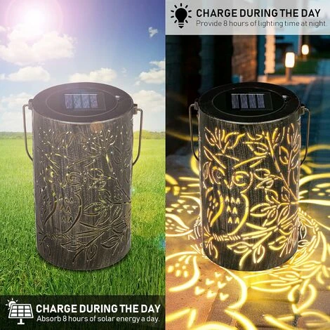 - Gracious Design : Lampada cava solare portatile in ferro battuto. ideale per decorare il tuo giardino, prato o patio. La luce solare decorativa da giardino ha un design cavo e il paralume del motivo è molto bello, creando un’atmosfera romantica che aggiunge calore al tuo cortile, veranda, area esterna, feste, festival, ecc.