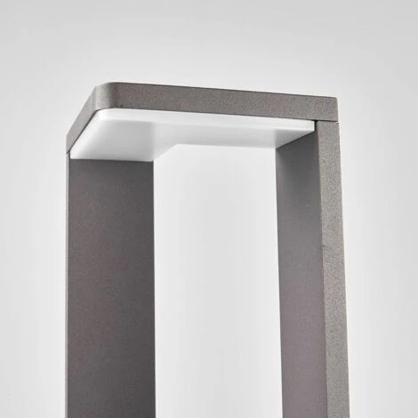 Lampioncino Jeny, minimalista, a LED, scuro La superficie della struttura in alluminio del lampioncino Jeny è grigio grafite. Di aspetto moderno, stupisce per la forma del suo singolare diffusore. Il telaio a forma di cornice, con un insolito paralume, si propone con una forma a punta di freccia in rilievo nell’ambiente o si richiama all’immagine di un triangolo. Le lampadine a LED bianco caldo si caratterizzano per la buona efficienza energetica e il basso consumo di energia elettrica.