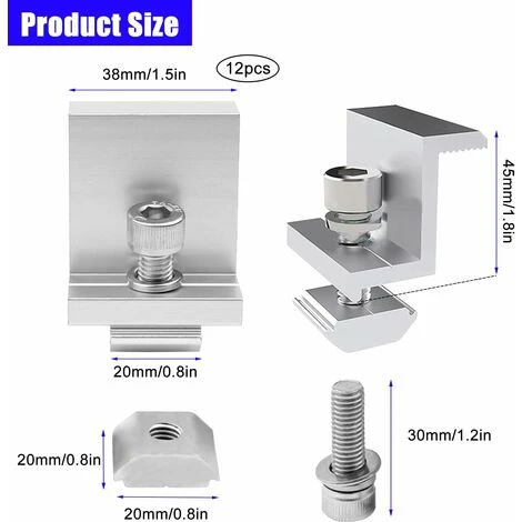 - Contenuto della confezione: 12 morsetti di terminazione solare/morsetto centrale, con fissaggi viti, adatte per pannello solare di 45 mm, La superficie del supporto fotovoltaico pressato il lato è punzonato da una macchina di precisione e lucidato senza sbavature.