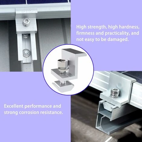 – Queste clip per pannelli solari in alluminio sono progettate per fissare i pannelli alle guide e creare una forte connessione tra i pannelli, rapida e facile montaggio del pannello solare fotovoltaico su varie superfici di piastrelle.