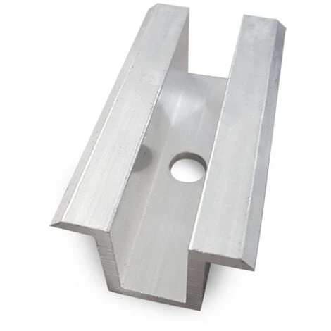 Morsetto intermedio ad omega in alluminio per fissaggio di moduli fotovoltaici.