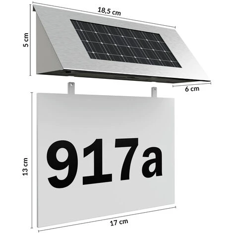 Il numero civico con pannello solare ha anche un interruttore on / off con cui si può spegnere l‘illuminazione, se necessario.