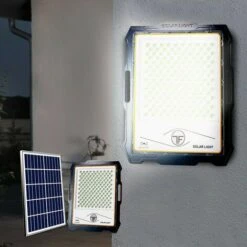 Faro Led 600W Con Pannello Solare Crepuscolare Ip66/67 Luce Fredda Telecomando