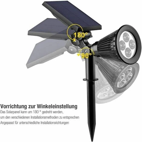 - [Riscaldatore solare rotante a 90 gradi con pannello solare rotante a 180 gradi] Il riscaldatore solare da giardino Bend è dotato di un riscaldatore da giardino rotante a 90 gradi. In questo modo, questo faretto solare illumina ogni angolo del tuo giardino. Inoltre, il pannello solare può essere ruotato di 180 gradi. Quindi puoi facilmente allineare il pannello solare nel luogo più soleggiato. Sempre un faretto solare da giardino completamente carico.