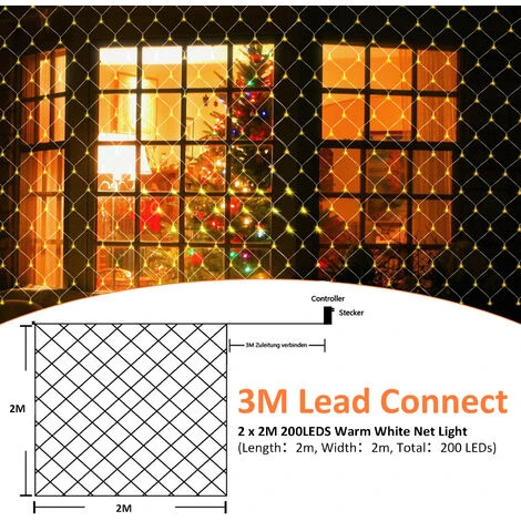 – Grado di protezione IP 44. Adatto per uso interno ed esterno. Puoi appendere le luci della rete a parete, finestra, porta, pavimento, soffitto, erba e albero di Natale.