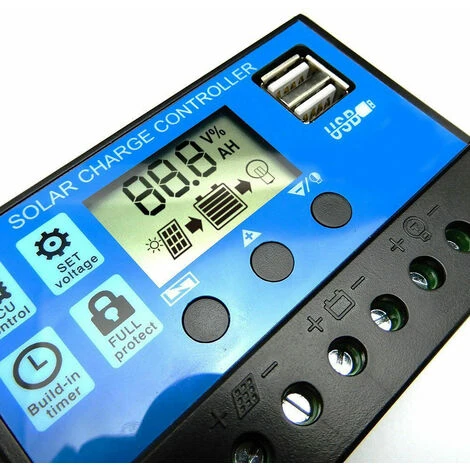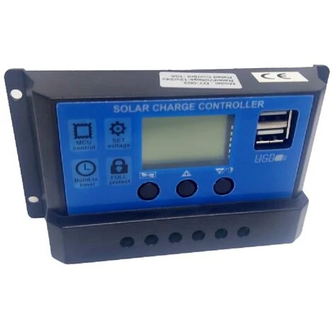 Regolatore di carica solare fotovoltaico 10A LCD 12V /24V per pannello solare Il regolatore di carica 10A monitor LCD per pannelli solari e completamente automatico Pratico e facile! 12V/24V automatico Riconoscimento! Specifiche tecniche:Informazioni su tensione, corrente e temperatura sul Display LCD Tensione di sistema: 12 V / 24 V (rilevazione automatica) Corrente massima del pannello: 10A Tensione massima del modulo: 24V Dimensioni: 135 x 70 x 30 millimetri ingombro base totale circaCorto circuito del carico Corto circuito del modulo Protezione contro il sovraccarico della batteria Protezione contro la scarica profonda della batteria Protezione da sovratensioni Prevenzione della corrente indietro nel modulo Contenuti nel pacco: 1 Regolatore DA 10A di carica solare1 Manuale inglese