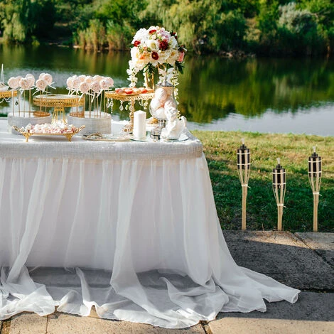 Con questo set da 10 fiaccole, da utilizzare sia come decorazione che comelampade, crei nel tuo giardino, soprattutto nelle serate più buie, unambiente suggestivo. Per godere della luce delle fiaccole basterà piantarle unaad una nel terreno e riempire il contenitore di olio, per poi accenderesemplicemente lo stoppino. Le candele rendono speciale ogni occasione: feste ingiardino, matrimoni, il campeggio o altre circostanze.