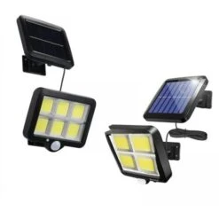 Faro Led Energia Solare 4 Cob Luce Fredda Sensore Movimento Faretto Esterno BK