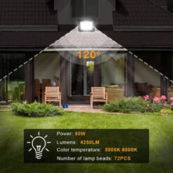 Randaco Proiettore LED 50W Con Sensore Di Movimento IP66 Impermeabile Punto Esterno Bianco Caldo LED