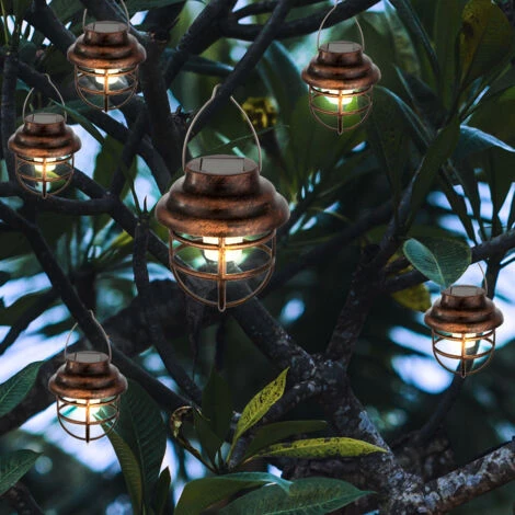 Lanterna Solare All’Aperto Giardino, 4 Pezzi 80 Luci A Spirale Solare Lampada A Sospensione Solare