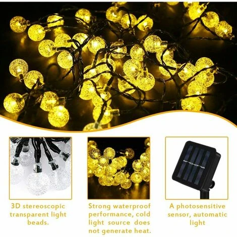 //Vantaggio IP65 // </ em>La luce a corda a globo solare con 60 graziose sfere di cristallo (2,5 cm di diametro) è progettata per resistere a condizioni meteorologiche avverse. luce da pioggia o acqua liquida. Il che lo rende ideale per feste, matrimoni, casa, finestre, bagni, spettacoli, ristoranti, hotel, cortili, giardini, terrazze, edifici commerciali, centri commerciali, ecc.