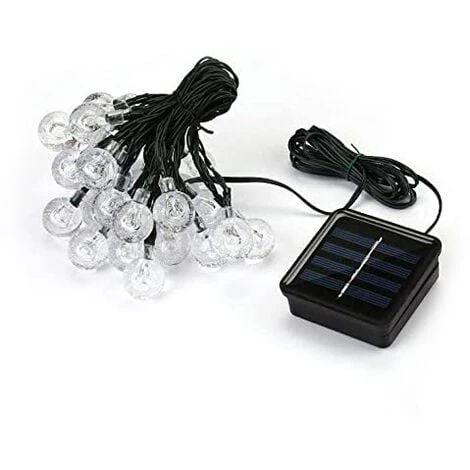Energia solare ? Collettore solare da 2V 200mA ? Batteria ricaricabile Ni-MH da 1,2V 1000 mAh incorporata ? Lunghezza totale 6,5m (lunghezza luce 4,5m + lunghezza cavo 2m) ? 30 sfere luminose a led.