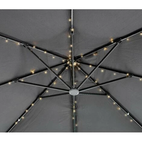 Luci LED per illuminare le serate estive all’esterno. Soluzione adatta a qualsiasi ombrellone, con 8 stringhe da 1,2 m con 9 LED ognuna . Funziona con batteria 1x AA