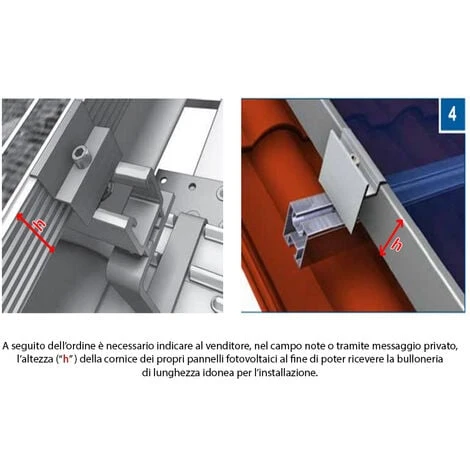 Specificare in fase di ordine l’altezza della cornice del pannello o il modello del pannello FV allo scopo di fornire i morsetti terminali corretti.