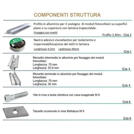 Le quantità di profilati ed accessori può essere variata in funzione delle specifiche richieste, inviate una richiesta per soluzioni diverse da quella indicata.