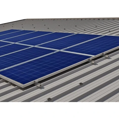 KIT di montaggio per impianti fotovoltaici su lamiera grecata (3 pannelli verticali standard disposti su una singola fila di pannelli) ( Larghezza massima pannello: 1100mm ). Il KIT include tutte le parti necessarie per garantire una facile e veloce installazione dell’impianto fotovoltaico ed offrire una struttura resistente alle forze del vento e della neve.