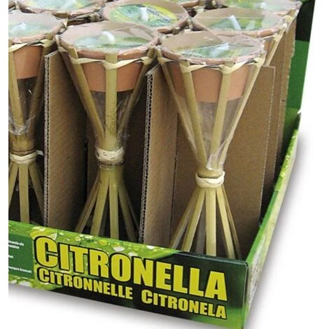 20X Fiaccola Candela Aroma Citronella Cocci In Terracotta 11cm Antizanzare