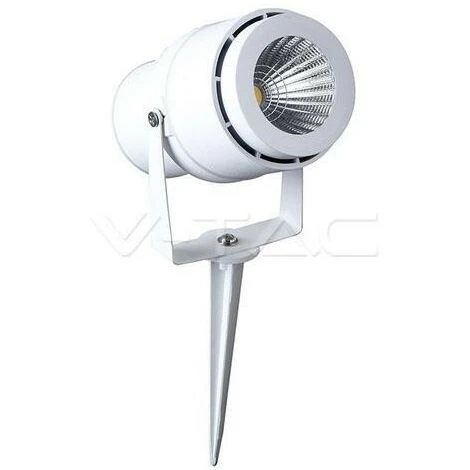 Lampada V-Tac da Giardino LED COB VT-857 con potenza di 12 W. Corpo in alluminio colore bianco, dotato di picchetto, ideale per illuminazione di piante e giardini. LED COB con fascio luminoso di 30°, flusso luminoso di 720 lm e rapporto di 60 lm/W. Testa orientabile di 360°. Grazie al grado di protezione IP65, è adatto per resistere per molto tempo all’esterno. Facile da montare, basta conficcare il picchetto nel terreno e connetterlo all’impianto tramite i cavi.