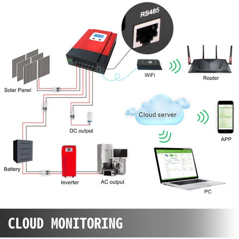 Questo controller per caricabatterie solare supporta l’espansione del modulo WIFI per realizzare il monitoraggio del cloud dell’app, contiene la linea di comunicazione RS485 e può fornire il protocollo di comunicazione.