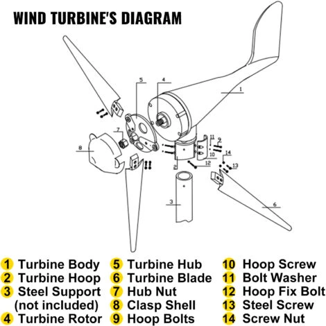 - Diametro della ruota del vento: 1,19 m (3,9 piedi)