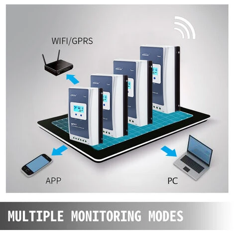 - 【MONITORAGGIO INTELLEGENTE】 – Questo controllo per pannelli solari consente molteplici modalità di monitoraggio: WIFI / GPRS, controllo remoto delle app mobili e monitoraggio del computer, che lo rendono estremamente conveniente per il tuo monitoraggio sempre e ovunque.