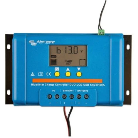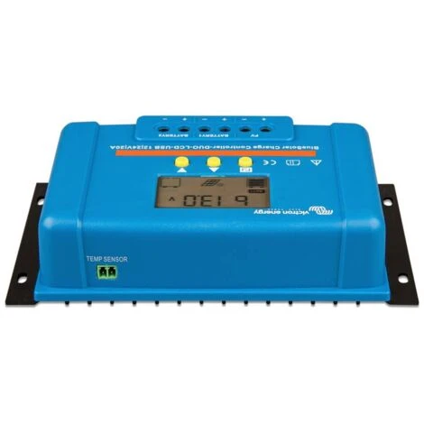 Schermo a cristalli liquidi Per il monitoraggio dello stato e per il set-up Uscita di carico È possibile evitare un sovraccarico della batteria collegando tutti i carichi all’uscita di carico. L’uscita di carico separa i carichi quando la batteria è stata scaricata fino a un valore di tensione predefinito. Alcuni carichi (in particolare gli invertitori) possono essere collegati direttamente alla batteria. Il telecomando dell’invertitore può essere collegato al meglio all’uscita di carico. In alcuni casi è necessario un cavo di interfaccia speciale, fare riferimento al manuale. I valori di tensione per il collegamento e lo scollegamento sono regolabili. Impostazione dell’ora giorno/notte dell’uscita di carico Questa opzione offre la possibilità di impostare un determinato orario DOPO il tramonto. Algoritmo di carica della batteria programmabile algoritmi preprogrammati per batterie AGM, GEL, elettrolita liquido o LiFePO4 (solo con BMS integrato) Due uscite USB da 5 V. Corrente massima (entrambe le uscite insieme): 2 A. Testo tradotto automaticamente