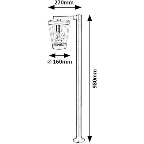 Dimensioni in mm: Lunghezza: 270, altezza: 980, diametro: 160
