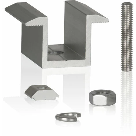 Il morsetto regolabile può essere regolato da 0 a 2,3 cm semplicemente avvitandolo e togliendolo, in modo da adattarsi sempre perfettamente alle guide dei moduli fotovoltaici. Il morsetto è regolabile e quindi adattabile individualmente ed è adatto a binari solari con una larghezza di 2,5 cm.