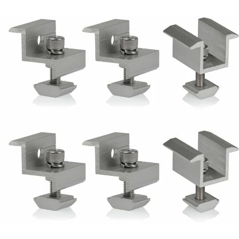 I morsetti regolabili possono essere regolati da 0 a 1 cm semplicemente avvitandoli e togliendoli, in modo da adattarsi sempre perfettamente alle guide dei moduli fotovoltaici. I morsetti sono regolabili e quindi adattabili individualmente e sono adatti a guide solari con una larghezza di 2,5 cm.